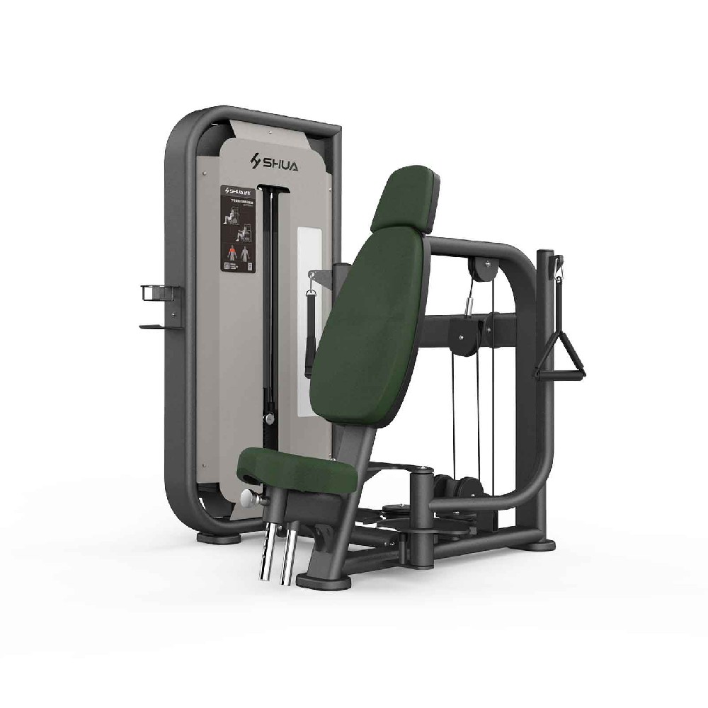主要功能 锻炼胸大肌、三角肌前束、肱二头肌1、 阻力形式:配重块;总重90kg;最小调节重量5kg2、垫类(坐/背/胸/肘垫):坐垫高度可调节;PU发泡成型3、最大人体承重:150kg4、主要管材规格:龙门架平椭150502.0mm,副架平椭120502.0mm5、牵索形式:日本进口钢丝绳;¢5.6mm6、轴承:人本轴承;62057、滑轮:尼龙加